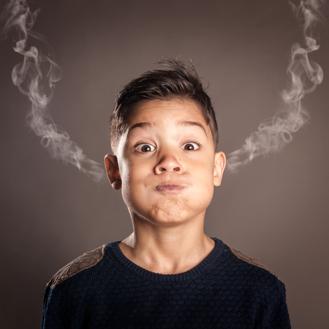 Bambino con fumo dalle orecchie: rappresentazione visiva della rabbia nei bambini